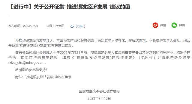 國家發(fā)改委:現(xiàn)公開征集“推進銀發(fā)經(jīng)濟發(fā)展”的有關(guān)意見建議