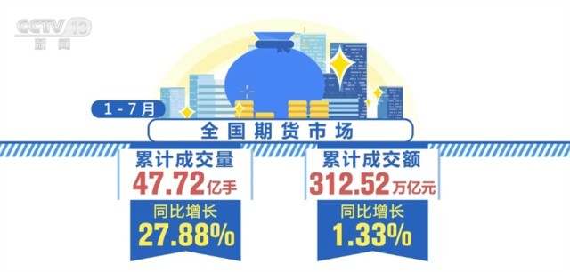 1—7月,全國期貨市場累計成交量為47.72億手,累計成交額為312.52萬億元,同比分別增長27.88%和1.33%。