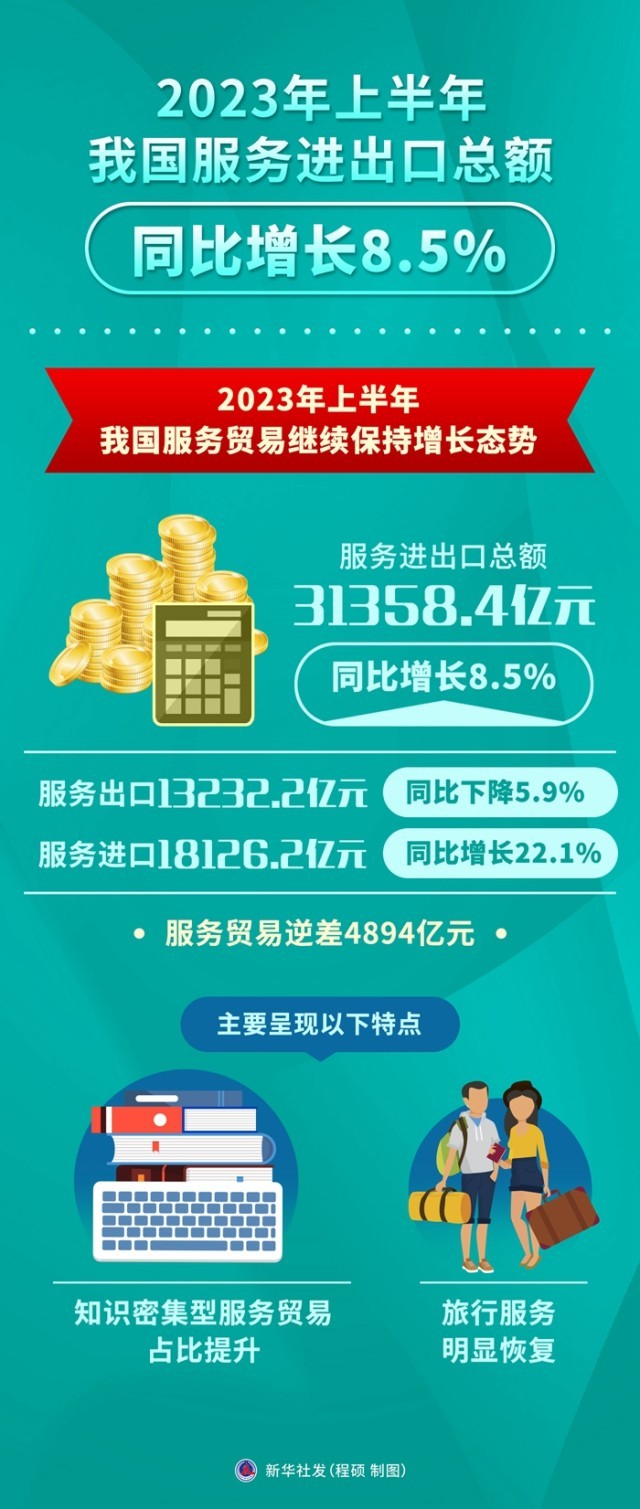 上半年我國服務(wù)進出口總額同比增長8.5%