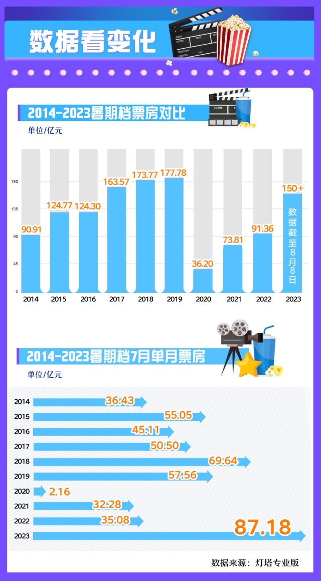 截至記者發(fā)稿,暑期檔票房已突破150億,時隔四年后重回“百億”級。