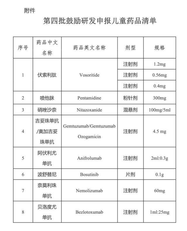 國家衛(wèi)健委發(fā)布的相關(guān)政策解讀中指出,《第四批清單》中的藥品在遴選時,跟進全球最新臨床進展,將近年來國外已上市國內(nèi)未上市的兒童藥品和國內(nèi)已上市但無兒童適宜劑型規(guī)格藥品作為重點考慮,著重選擇安全性、有效性、適宜性高的品種。例如治療白血病的吉妥珠單抗、波舒替尼等藥品。