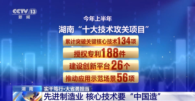 今年上半年,湖南“十大技術(shù)攻關(guān)項目”累計突破關(guān)鍵核心技術(shù)134項,授權(quán)專利188件,建設(shè)創(chuàng)新平臺26個,推動應用示范場景56項。與此同時,湖南正在加快推進省級“四大實驗室”的建設(shè),為先進制造業(yè)創(chuàng)新研發(fā)提供基礎(chǔ)研究和成果轉(zhuǎn)化的保障。