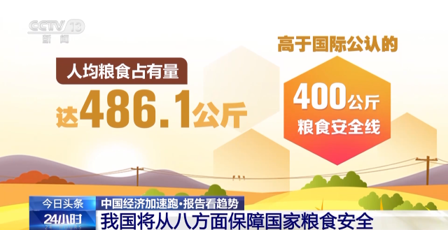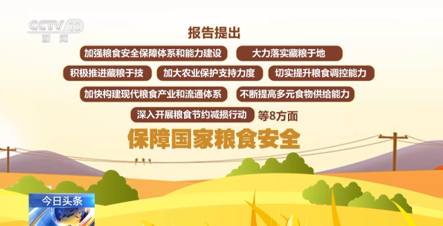 報(bào)告提出,將從加強(qiáng)糧食安全保障體系和能力建設(shè)、大力落實(shí)藏糧于地、積極推進(jìn)藏糧于技、加大農(nóng)業(yè)保護(hù)支持力度、切實(shí)提升糧食調(diào)控能力、加快構(gòu)建現(xiàn)代糧食產(chǎn)業(yè)和流通體系、不斷提高多元食物供給能力、深入開展糧食節(jié)約減損行動(dòng)等8方面,保障國(guó)家糧食安全。