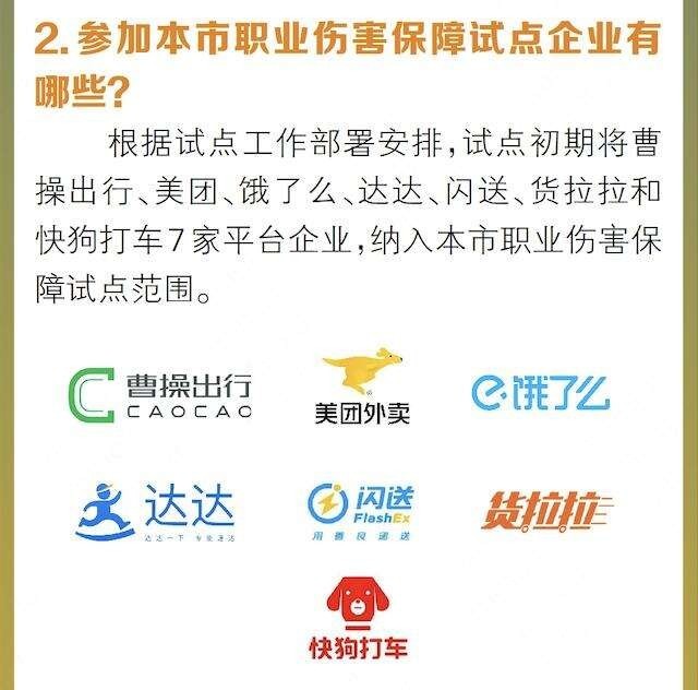 據(jù)了解,“新型社?!痹圏c(diǎn)從去年7月1日啟動(dòng)實(shí)施,第一批試點(diǎn)在曹操出行、美團(tuán)、餓了么、達(dá)達(dá)、閃送、貨拉拉、快狗打車7家平臺(tái)企業(yè),在全國7個(gè)省市開展。