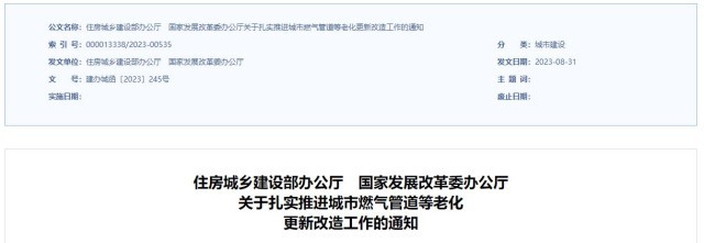 住建部等兩部門:推進2023年城市燃氣管道等老化更新改造工作