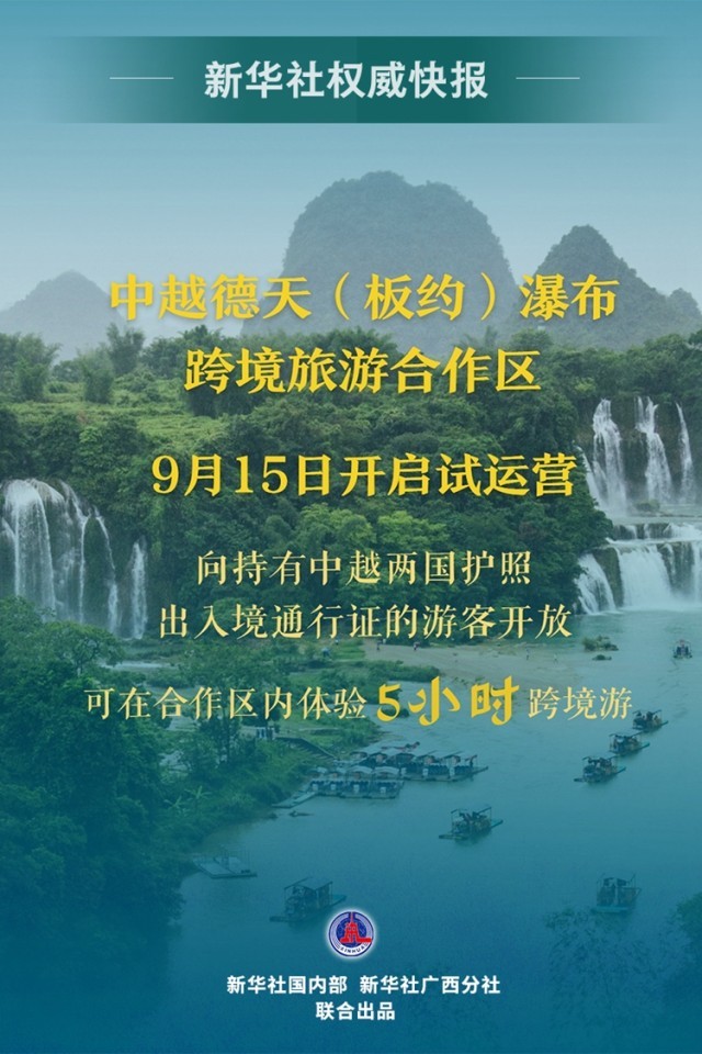位于中國(guó)和越南交界地帶的德天(板約)跨國(guó)瀑布是亞洲第一、世界第四大跨國(guó)瀑布,中越德天(板約)瀑布跨境旅游合作區(qū)9月15日開(kāi)啟試運(yùn)行。