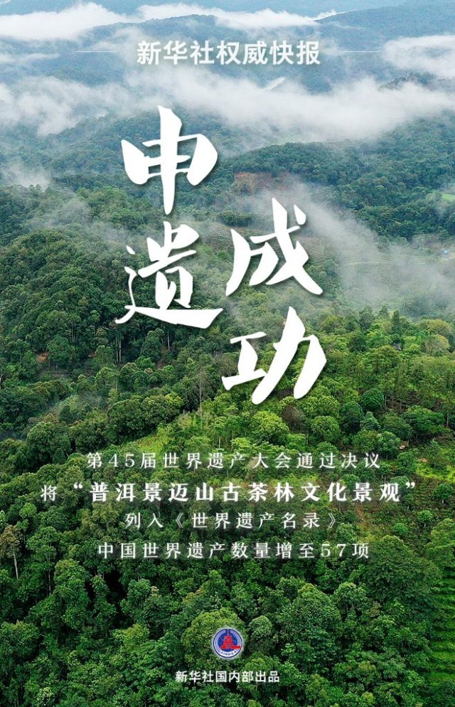 記者9月17日從國家文物局獲悉,在沙特阿拉伯利雅得舉行的聯(lián)合國教科文組織第45屆世界遺產(chǎn)大會(huì)通過決議,將“普洱景邁山古茶林文化景觀”列入《世界遺產(chǎn)名錄》。這是全球首個(gè)茶主題世界文化遺產(chǎn)。