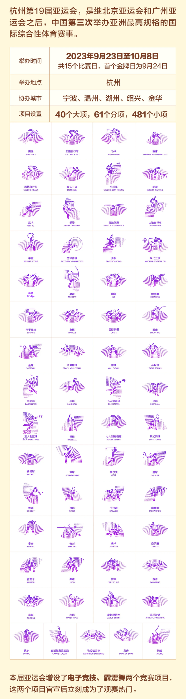 接下來跟著小編一起,一圖了解杭州亞運(yùn)會(huì)吧↓