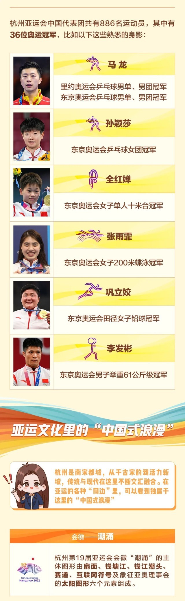 亞運(yùn)會(huì)有哪些值得關(guān)注的比賽和知名運(yùn)動(dòng)員?杭州舉辦的這屆盛會(huì)里,又藏著哪些“中國(guó)式浪漫”?想全面了解亞運(yùn),這份攻略,你絕對(duì)不能錯(cuò)過!