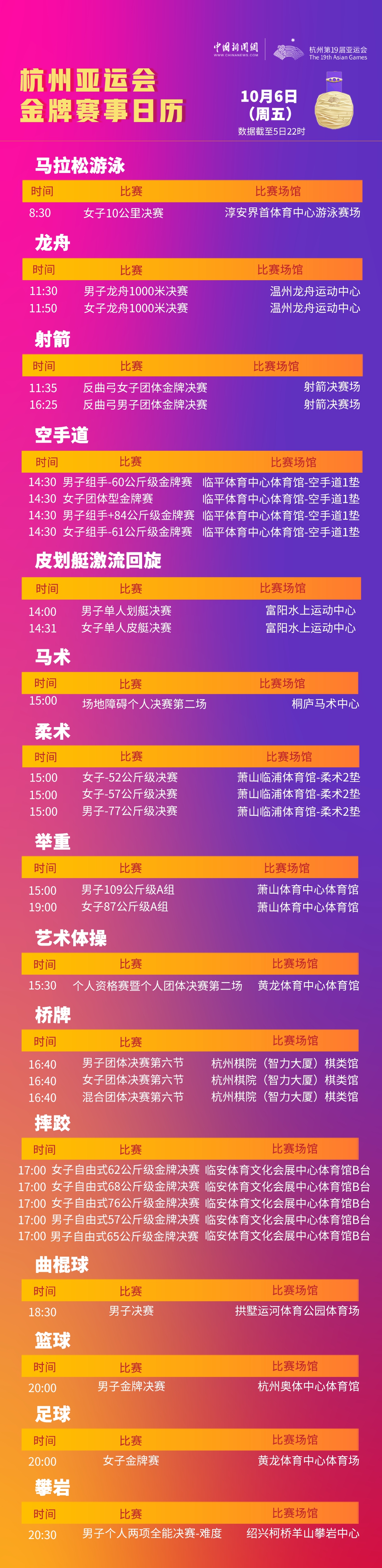 杭州亞運(yùn)會6日金牌賽程:30金懸念待解 霹靂舞開賽