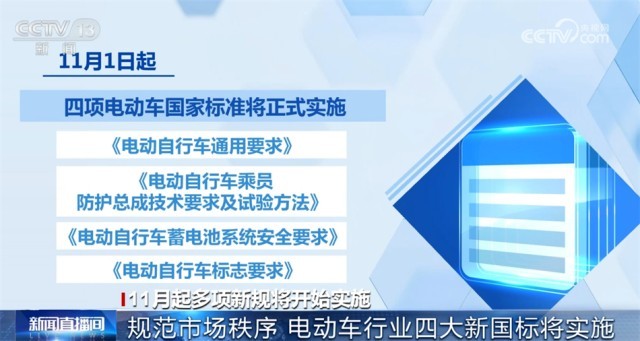 11月1日起,四項電動車國家標準將正式實施,分別是《電動自行車通用要求》《電動自行車乘員防護總成技術要求及試驗方法》《電動自行車蓄電池系統(tǒng)安全要求》以及《電動自行車標志要求》。這些標準對電動車的設計制造、安全性能、電池系統(tǒng)和標識等方面都提出了明確規(guī)定,涉及電動車的車把、鋰電池、總線設計、電子控制系統(tǒng)等。