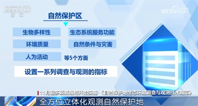 生態(tài)環(huán)境部發(fā)布的《自然保護地生態(tài)環(huán)境調查與觀測技術規(guī)范》將從11月1日起施行。《技術規(guī)范》對自然保護區(qū)的生物多樣性、生態(tài)系統(tǒng)服務功能、環(huán)境質量、自然條件與災害和人為活動等5個方面設置了一系列調查與觀測的指標,將綜合利用“天空地”各種觀測技術手段,形成集“遙感監(jiān)測、地面觀測與實地調查、資料收集與調查統(tǒng)計”等多種方法相結合的全方位、立體化調查與觀測技術體系。