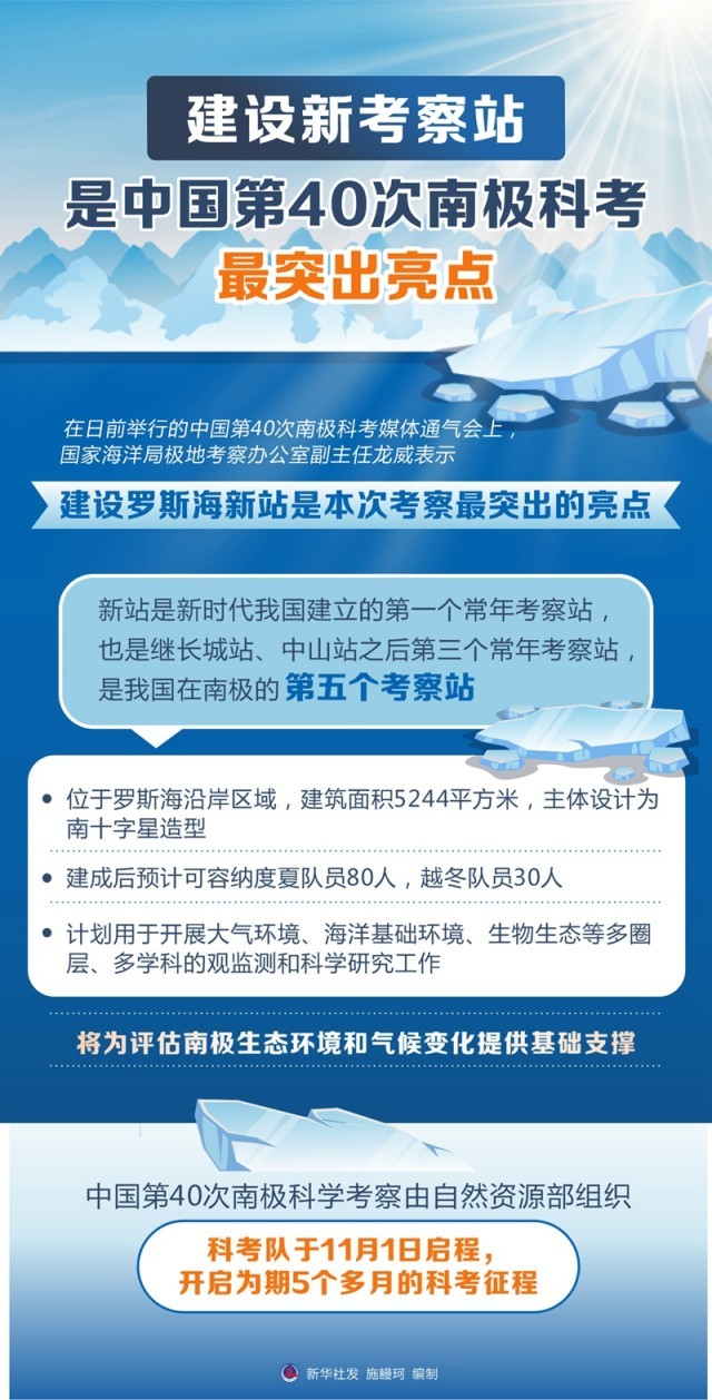中國(guó)第40次南極科學(xué)考察由自然資源部組織??瓶缄?duì)于11月1日啟程,開啟為期5個(gè)多月的科考征程。