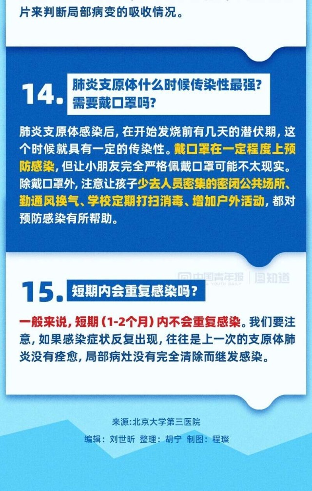 肺炎支原體感染有沒有后遺癥?提前用阿奇霉素是否能阻止病情發(fā)展成肺炎?肺炎支原體什么時(shí)候傳染性最強(qiáng)?肺炎支原體短期內(nèi)會(huì)重復(fù)感染嗎?最近上熱搜的肺炎支原體,兒科專家整理了15個(gè)家長(zhǎng)常見問題,轉(zhuǎn)存收藏,希望小朋友都能健健康康、遠(yuǎn)離疾病。