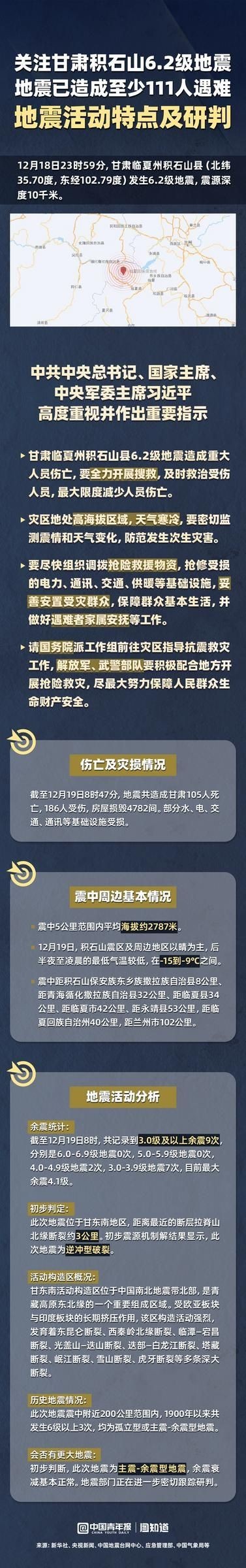 - 甘肅臨夏積石山縣6.2級地震 仍存在發(fā)生強余震的可能性