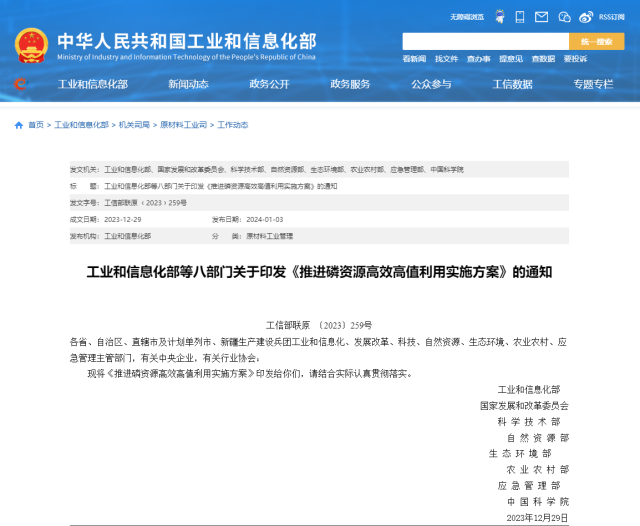 央視網(wǎng)消息:工信部等八部門印發(fā)《推進磷資源高效高值利用實施方案》,其中提出,堅持分類施策,推進產(chǎn)品結(jié)構(gòu)調(diào)整。嚴格控制磷銨、黃磷等行業(yè)新增產(chǎn)能。促進磷肥保供穩(wěn)價,優(yōu)先保障磷肥企業(yè)磷礦需求,引導(dǎo)企業(yè)科學(xué)排產(chǎn)、維持合理庫存、穩(wěn)定市場預(yù)期,支持骨干企業(yè)做優(yōu)做強,積極發(fā)展新型高效磷肥品種。擴大濕法凈化磷酸及黃磷精深加工生產(chǎn)能力,延伸發(fā)展功能性磷酸鹽等高附加值磷化學(xué)品,推動產(chǎn)業(yè)發(fā)展方式由規(guī)模擴張向精細化、專用化、系列化的服務(wù)型制造轉(zhuǎn)變。