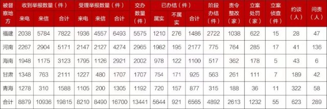 截至2023年12月31日,各督察組共收到群眾來電、來信舉報(bào)19815件,受理有效舉報(bào)16700件,經(jīng)梳理合并重復(fù)舉報(bào),累計(jì)向相關(guān)省轉(zhuǎn)辦13441件。相關(guān)省已辦結(jié)或階段辦結(jié)11457件。其中,立案處罰1232家,立案偵查55件;約談黨政領(lǐng)導(dǎo)干部623人,問責(zé)黨政領(lǐng)導(dǎo)干部289人。
