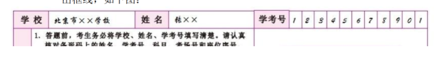 3.答題前要仔細(xì)閱讀答題卡上的“考生須知”。務(wù)必用黑色字跡的簽字筆將答題卡左上角的學(xué)校名稱、姓名、學(xué)考號填寫清楚,字跡不能超出框線,如下圖: