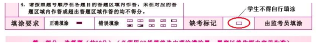 考生不得自行填涂“缺考標(biāo)記”欄,如下圖所示: