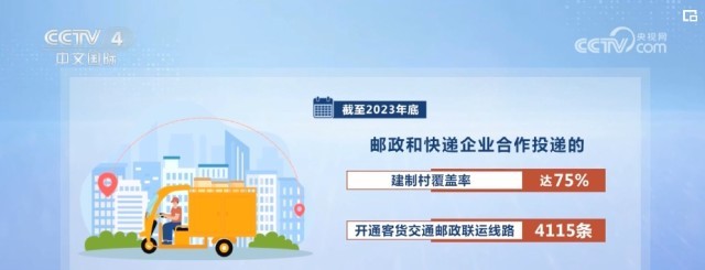 數(shù)據(jù)顯示,截至2023年底,中國郵政建成1061個縣、6010個鄉(xiāng)鎮(zhèn)的郵政處理中心和40萬個郵政及郵樂購村級站點,郵政和快遞企業(yè)合作投遞的建制村覆蓋率達(dá)75%,開通客貨交通郵政聯(lián)運(yùn)線路4115條。