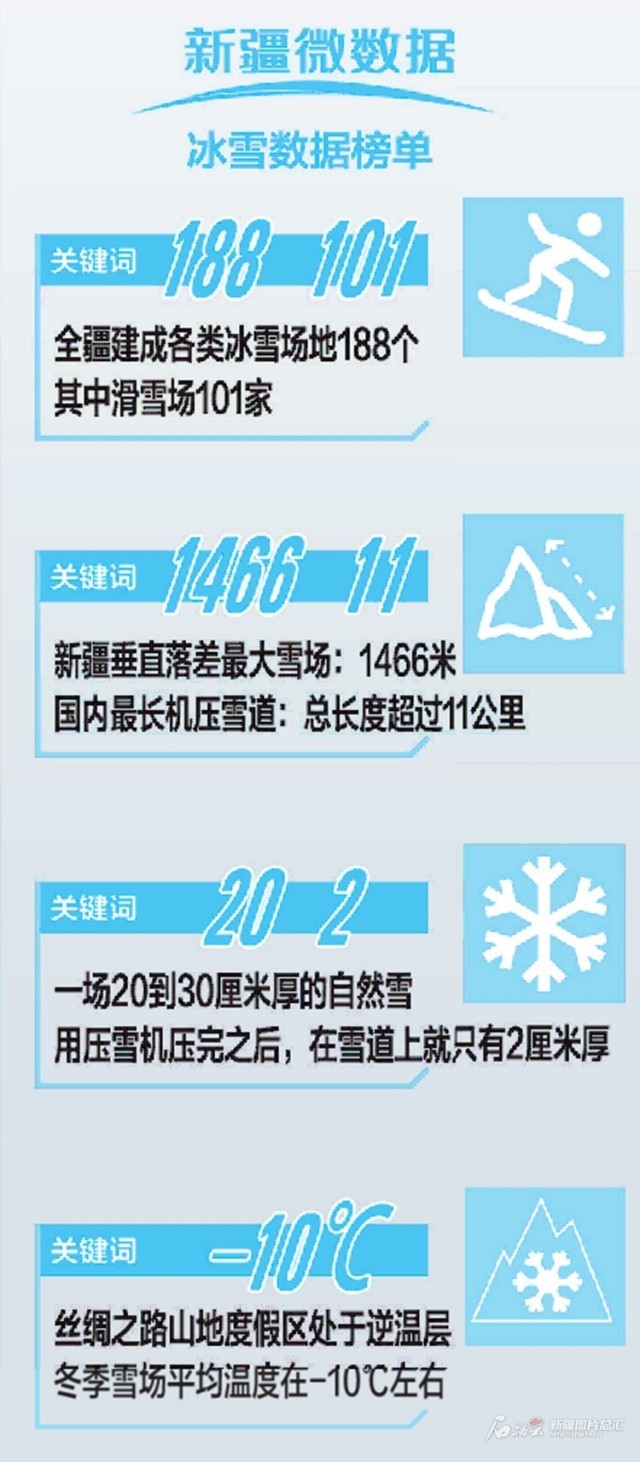 近年來(lái),新疆冰雪旅游蓬勃發(fā)展,最新數(shù)據(jù)顯示,全疆建成各類冰雪場(chǎng)地188個(gè),其中滑雪場(chǎng)101家。位于冰雪黃金緯度帶,散落在天山、阿爾泰山的滑雪場(chǎng),有一份亮眼的成績(jī)單:雪季最長(zhǎng)、落差最大、雪道最多、景色最美……新疆極致冰雪體驗(yàn)背后那些不為人知的故事,記者來(lái)為你揭秘。