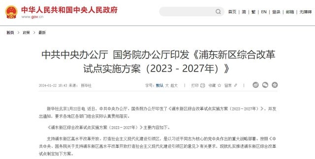 近日,中共中央辦公廳、國務院辦公廳印發(fā)了《浦東新區(qū)綜合改革試點實施方案(2023-2027年)》。
