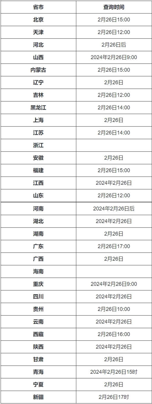 山西、重慶考生可于26日9時(shí)起查詢;天津、吉林、山東考生可在26日12時(shí)起查詢;黑龍江、江蘇考生可以在26日14時(shí)起查詢;北京、福建、青海、內(nèi)蒙古考生可于26日15時(shí)起查詢;廣東、新疆考生可于26日17時(shí)起查詢。詳見>>2024研考初試成績查詢時(shí)間匯總