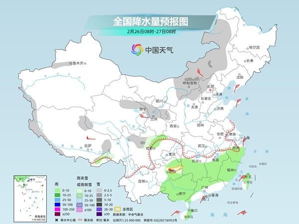 氣象部門提醒,南方大部陰雨頻繁的天氣將延續(xù)至3月初,其中,后天至3月1日,降水又將增強(qiáng),需關(guān)注路面濕滑、能見度下降等對(duì)春運(yùn)出行等方面的不利影響。華北、東北部分地區(qū)今明天將有降雪,公眾雪天外出請(qǐng)留意交通安全。