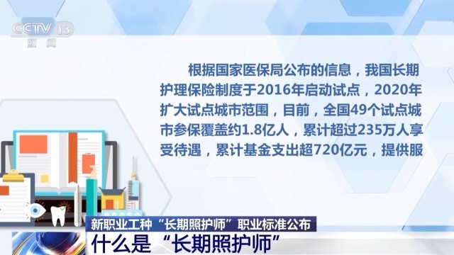 記者從國家醫(yī)保局了解到,長期照護(hù)師是國家醫(yī)保局為穩(wěn)步推進(jìn)長期護(hù)理保險制度建設(shè),在人力資源社會保障部支持下新設(shè)置的一個職業(yè)工種。