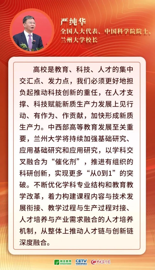 2024年政府工作報告提出,大力推進(jìn)現(xiàn)代化產(chǎn)業(yè)體系建設(shè),加快發(fā)展新質(zhì)生產(chǎn)力。培育和發(fā)展新質(zhì)生產(chǎn)力,創(chuàng)新是核心要素,基礎(chǔ)和先導(dǎo)靠教育。高校如何發(fā)揮支撐作用,推動新質(zhì)生產(chǎn)力發(fā)展?5位代表委員,同時也是大學(xué)書記、校長,提出了建議,來聽他們怎么說——