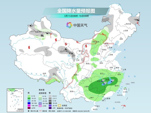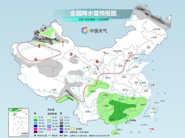中央氣象臺預(yù)計,未來三天,南方大范圍陰雨天氣持續(xù),新疆、西藏、黑龍江及內(nèi)蒙古東北部也有降雪出沒,局地有大到暴雪。