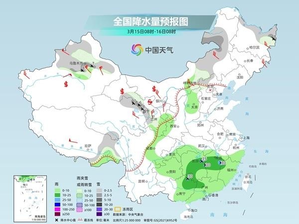 具體來看,預(yù)計,今天,新疆北部、青海北部、甘肅、內(nèi)蒙古東部、黑龍江北部、河北西北部等地部分地區(qū)有小到中雪或雨夾雪,其中,新疆沿天山地區(qū)、青海東北部、黑龍江東北部等地部分地區(qū)有大雪。甘肅南部、寧夏南部、陜西西南部、湖北南部、湖南、江西大部、重慶東部、貴州大部、華南大部等地部分地區(qū)有小到中雨,其中,湖南東北部、江西中部、廣西東北部等地部分地區(qū)有大雨。