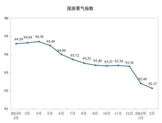 2月份,房地產(chǎn)開發(fā)景氣指數(shù)(簡(jiǎn)稱“國(guó)房景氣指數(shù)”)為92.13。