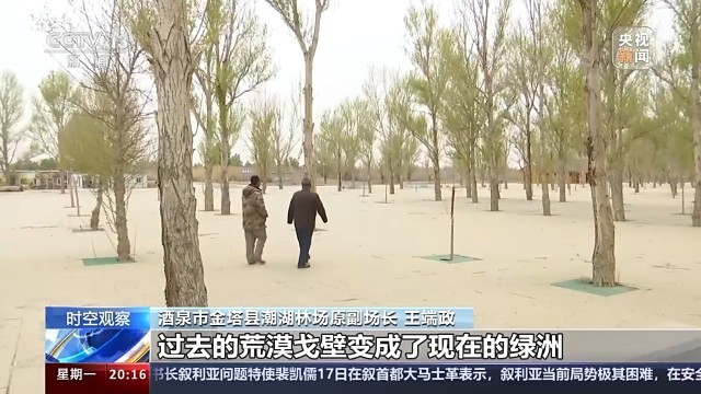 甘肅酒泉金塔縣潮湖林場副場長 王端政:過去的沙進(jìn)人退變成了現(xiàn)在的人進(jìn)沙退,過去的荒漠戈壁變成了現(xiàn)在的綠洲,現(xiàn)在金塔的生態(tài)環(huán)境得到了很大的改善。