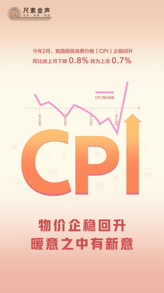 國家統(tǒng)計(jì)局發(fā)布的最新數(shù)據(jù)顯示,今年2月,我國居民消費(fèi)價(jià)格(CPI)企穩(wěn)回升,同比由上月下降0.8%轉(zhuǎn)為上漲0.7%,其中扣除食品和能源價(jià)格的核心CPI漲幅為2022年2月以來最高。