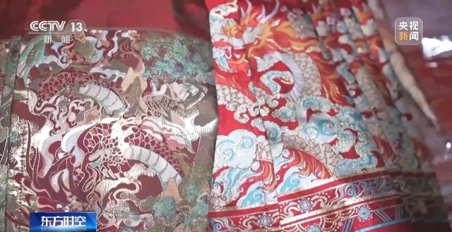魏平安:因?yàn)榻衲赀^年是龍年,我們特意設(shè)計了兩款比較好看的龍圖案馬面裙,沒想到它們兩個都爆了。這款就是比較直接一點(diǎn),就是有一個很大的龍的刺繡加了一些龍紋,加了一些花、牡丹花之類的。