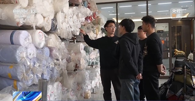 魏平安介紹,完備的產(chǎn)業(yè)鏈正是當(dāng)年吸引他回鄉(xiāng)創(chuàng)業(yè)的重要原因之一。他建議我們?nèi)ッ媪陷o料一條街轉(zhuǎn)轉(zhuǎn),他說空著手在這走5公里就能做出一件漢服。而現(xiàn)在這里依然是他采購面料輔料的地方。