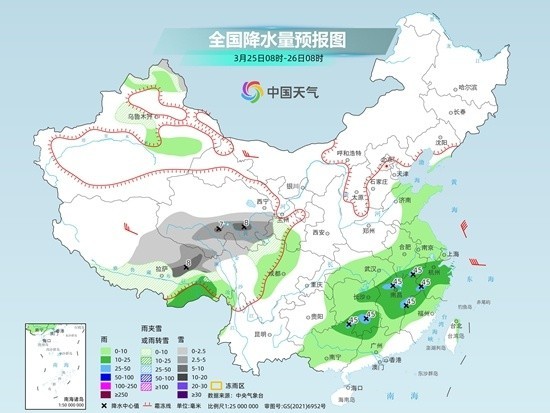 今天(3月25日),中東部降水范圍向南收縮,強(qiáng)度也將有所減弱,不過(guò)安徽、江西、浙江、福建、湖南、廣西等地局地仍有大雨。氣溫方面,今明天降溫重心將轉(zhuǎn)移至江南、華南等地,北方則快速進(jìn)入升溫通道,本周將再度掀起一波創(chuàng)新高浪潮,最高氣溫25℃線或?qū)⒈碧е廖鞅钡貐^(qū)一帶。