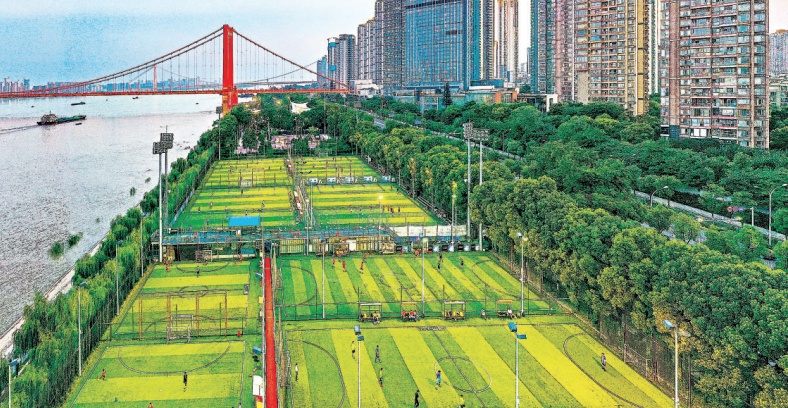 自1998年以來,武漢市持續(xù)實施“兩江四岸”江灘防洪及環(huán)境綜合整治工程。截至目前,建成長79.65公里、面積831公頃、綠地面積527公頃的江灘公園。