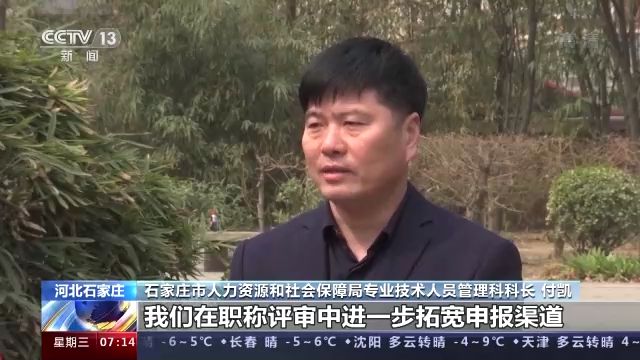 石家莊市人力資源和社會保障局專業(yè)技術人員管理科科長 付凱:我們在職稱評審中,進一步拓寬申報渠道。對高校畢業(yè)生職稱認定從原來一年一次的集中初聘認定,改為現(xiàn)在一月一次的考核認定,實現(xiàn)人才職稱的即報即審,對穩(wěn)定高校畢業(yè)生就業(yè)起到了保障作用,使得人才引得來,留得住。