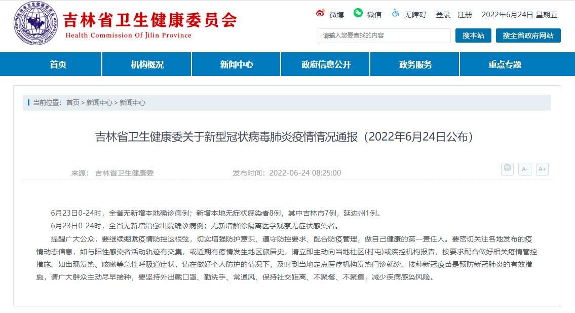 圖片來源:吉林省衛(wèi)健委網(wǎng)站截圖