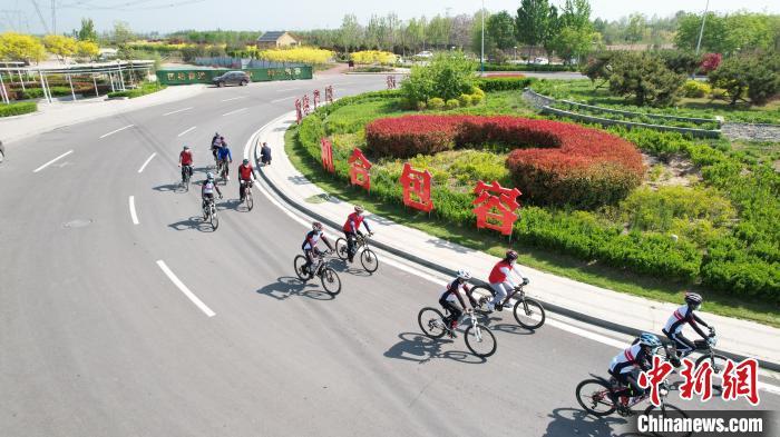 邢臺市任澤區(qū)的騎行愛好者在當(dāng)?shù)氐男现莺珗@綠道上進(jìn)行自由騎行活動(dòng)?!∷谓?攝