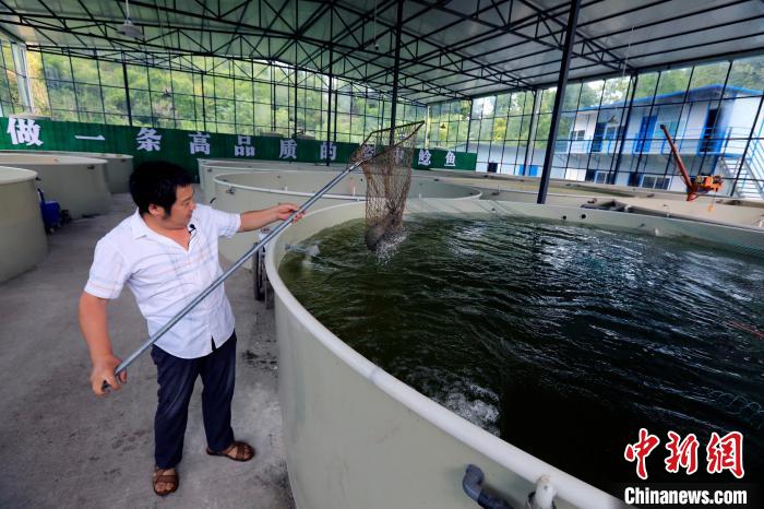 在四川省內江市資中縣銀山鎮(zhèn)金紫鋪村,300余畝的高位池養(yǎng)魚基地內波光粼粼、魚躍水面。一口口標準化高位池約3-5米深,采用科學技術養(yǎng)殖技術,一口高位池的畝產量可達到傳統(tǒng)魚塘的十幾倍。投苗、飼喂魚料、打掃衛(wèi)生……成了基地內工作人員的“必修課”。