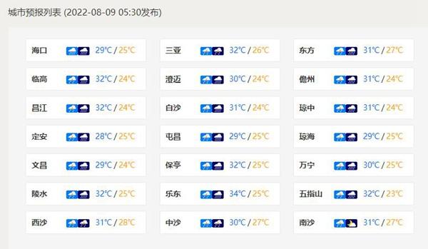 海南各城市預(yù)報。(來源:中國天氣網(wǎng))