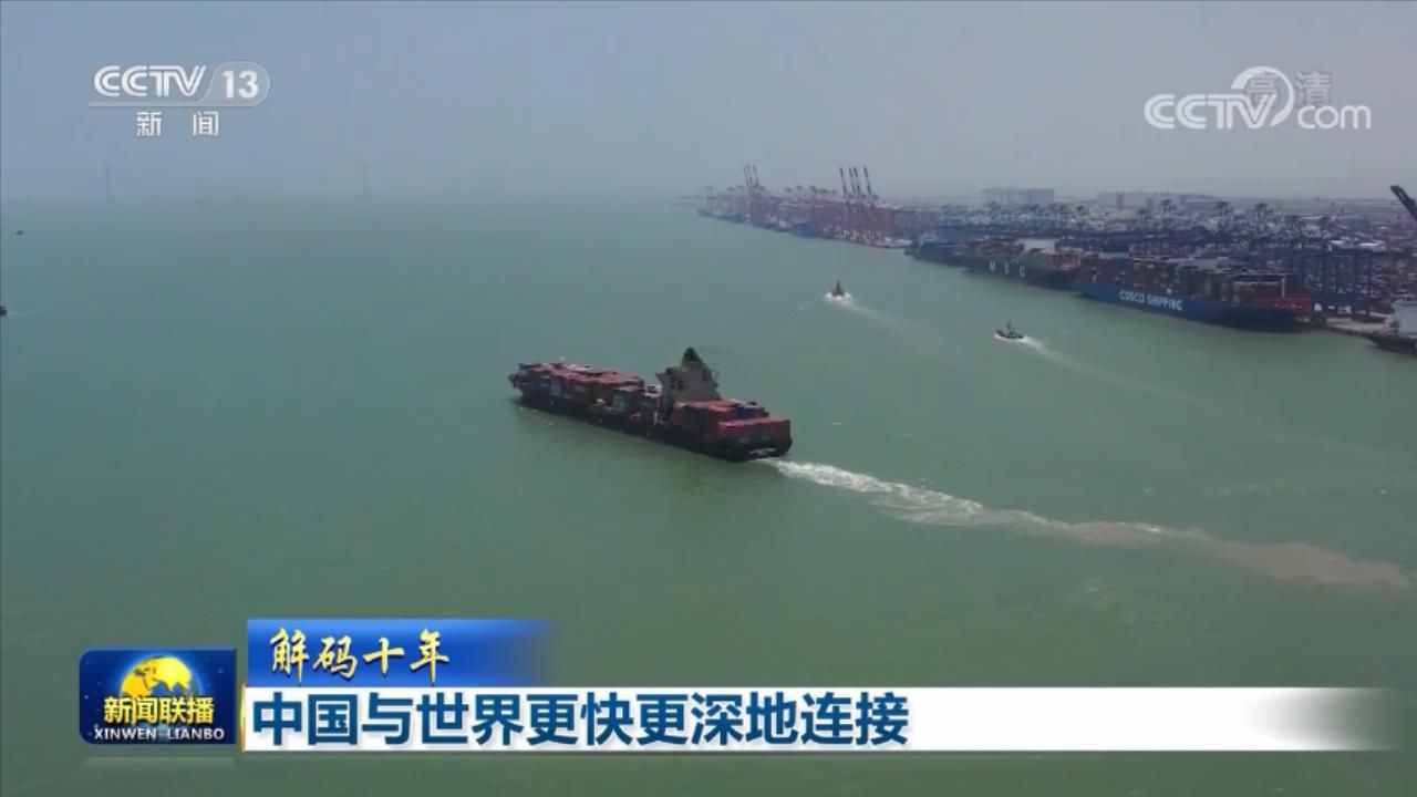 這十年間,中國沿海11個國際樞紐港口的航線量增長了60%。海運服務網絡聯(lián)通了100多個國家和地區(qū)的主要港口,成為全球海運連接度最高的國家。