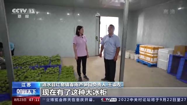 江蘇省漣水縣紅窯鎮(zhèn)春雨蘆筍園負(fù)責(zé)人 王崇左:過去天熱的兩個(gè)月我們就不采收,現(xiàn)在有了這種大冰柜,可以大膽采收了。