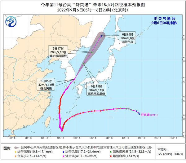 預(yù)計,“軒嵐諾”即將進(jìn)入日本海,并以每小時70公里左右的速度向東北方向快速移動,強(qiáng)度逐漸減弱,并變性為溫帶氣旋。由于對我國的影響趨于結(jié)束,中央氣象臺早晨6點解除臺風(fēng)藍(lán)色預(yù)警。