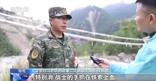 武警四川總隊機動第二支隊工兵中隊政治指導員 胡笑可:很有戰(zhàn)斗力,大家想的就是,我受領了這個任務,我要去轉(zhuǎn)移群眾,我要把物資送到群眾手里面,這就是我要干的事情。他們很少考慮說這個過程中,有這個落石會威脅到我的生命,沒有這樣的情況,都是想把這個任務完成好。