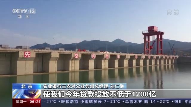 農(nóng)業(yè)銀行三農(nóng)對(duì)公業(yè)務(wù)部總經(jīng)理 劉仁舉:我們上半年累計(jì)投放水利貸款超過了640億元,在歷年同期當(dāng)中是最多的,下一步我們將會(huì)圍繞國家重大水利建設(shè)項(xiàng)目,加大支持力度,實(shí)行最優(yōu)惠的利率,使我們今年的貸款投放不低于1200億元。
