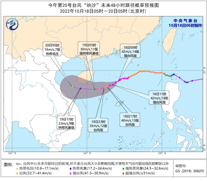 第20號臺風(fēng)“納沙”未來48小時路徑概率預(yù)報圖